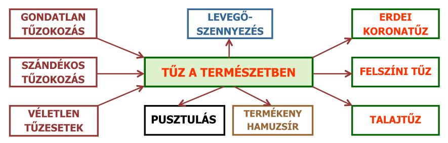 gondatlan vagy akár szándékos okozása a természeti jelenségnél (véletlen tűzeseteknél) sokkal gyakrabban előfordul a természeti területeken, és a gondatlanság miatti tűz a leggyakoribb hazánkban is. Természetesen mindent meg kell tenni a különböző tűzesetek megelőzése érdekében, vagy a mielőbbi megszüntetésükre (tűzoltás, terjedés akadályozása).